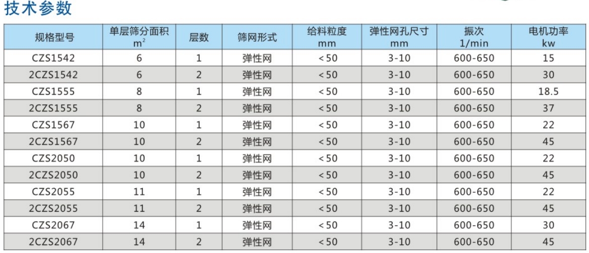 主機配備高性能彈性篩網、彈性連桿板、支承板、膜片聯(lián)軸器及主機傳動系統(tǒng)、篩機可靠性高。傳動機構以10-11.6HZ的頻率作業(yè),整機動負荷小,適用于各種靜承重場合的設備更新。