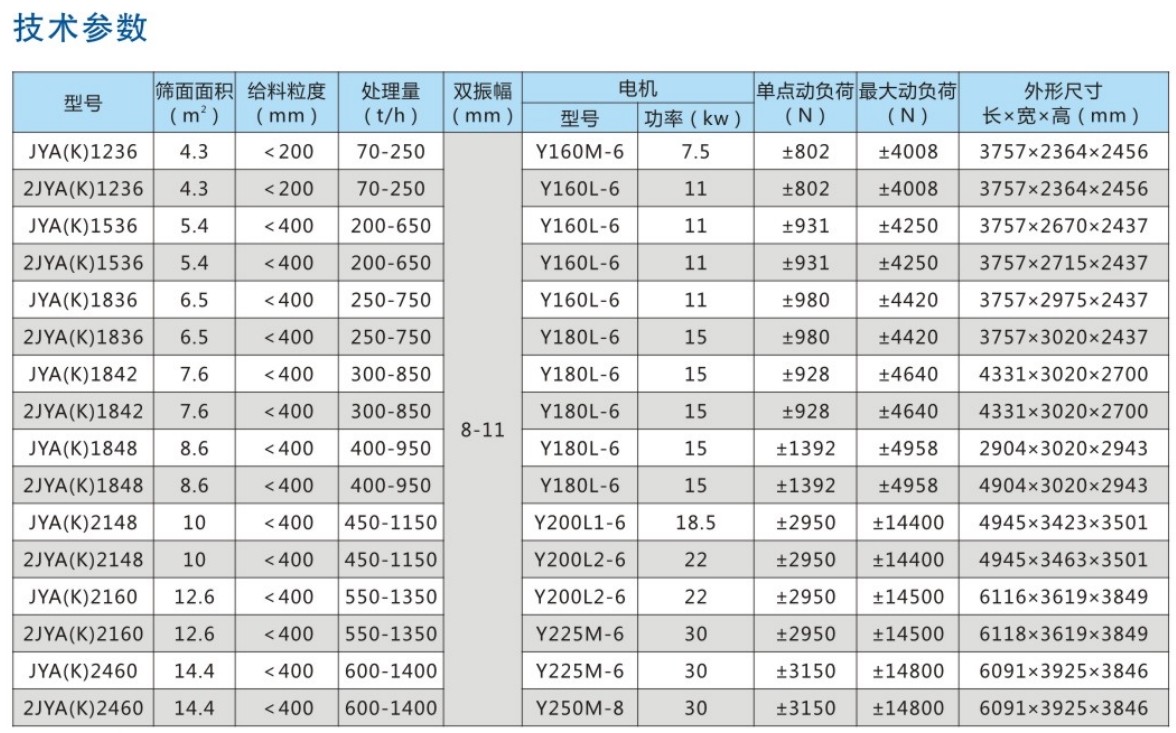 JYA(K)型圓振篩由振動源、篩體、篩網、減振裝置和底托組成,篩機側板采用優(yōu)質鋼板制作而成,側板與橫梁、激振器底座采用高強度螺栓或環(huán)槽鉚釘連接,結構合理,堅固耐用。